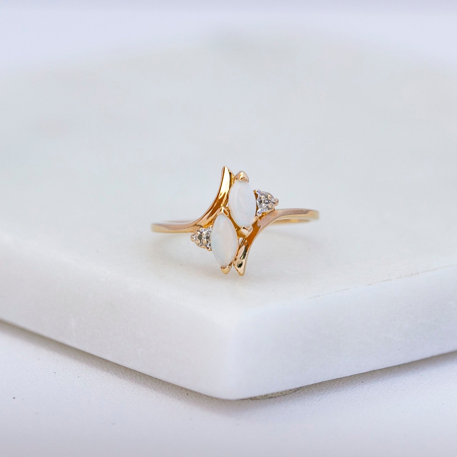 As sweet as it is colorful, the Marquise Opal Toi et Moi ring is an October baby’s dream come true. The bypass style of this opal duet is sure to be a conversation starter!